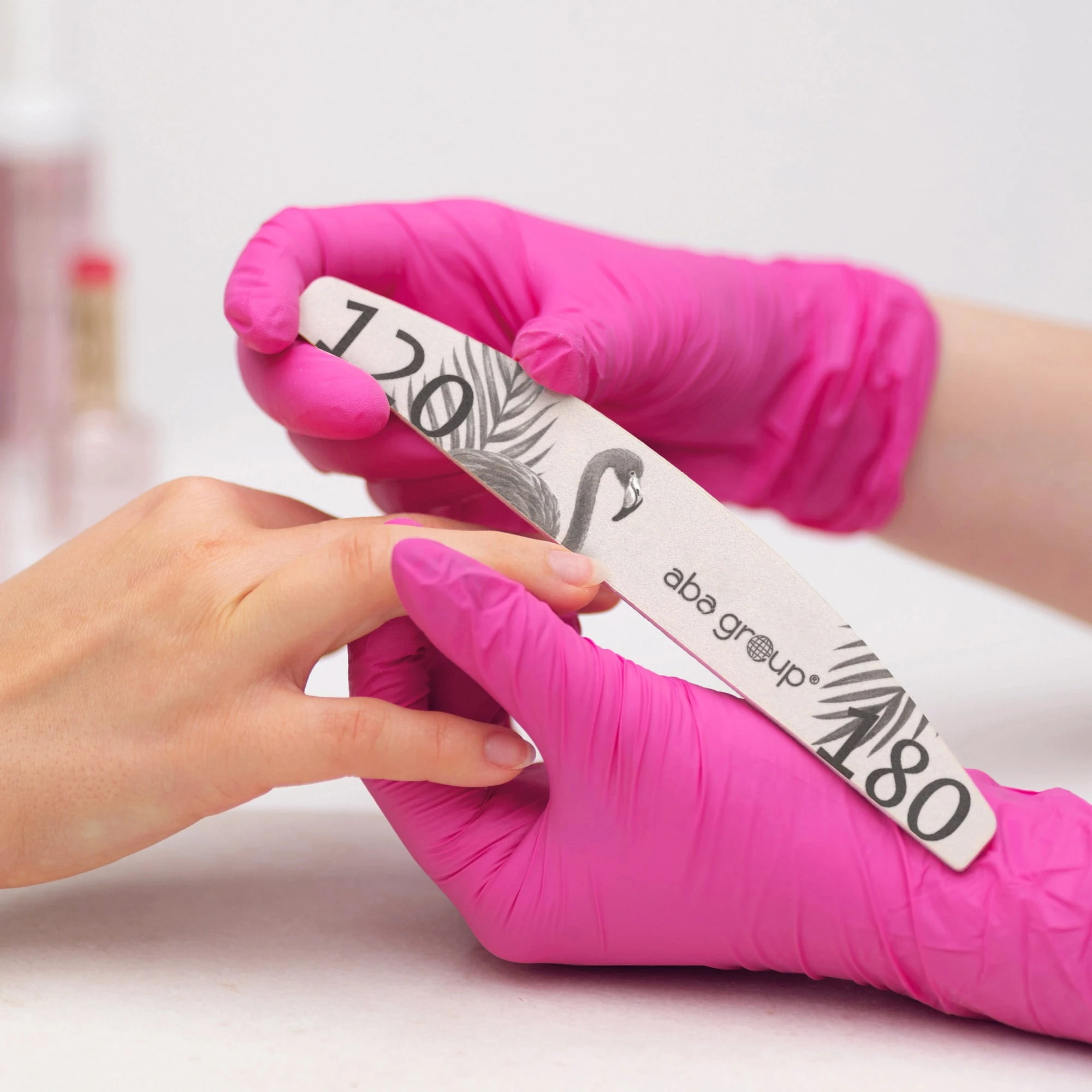 Jednorazowe pilniki do paznokci Aba Group o gradacji 120/180, dedykowane do użytku profesjonalnego.