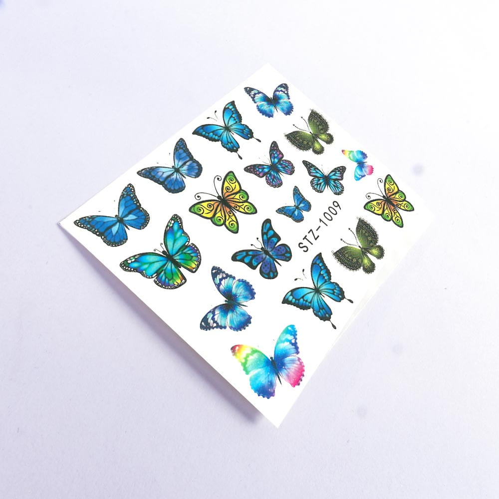 Naklejki wodne do zdobienia paznokci, wzór motyle niebieskie/tęczowe/ zółte.