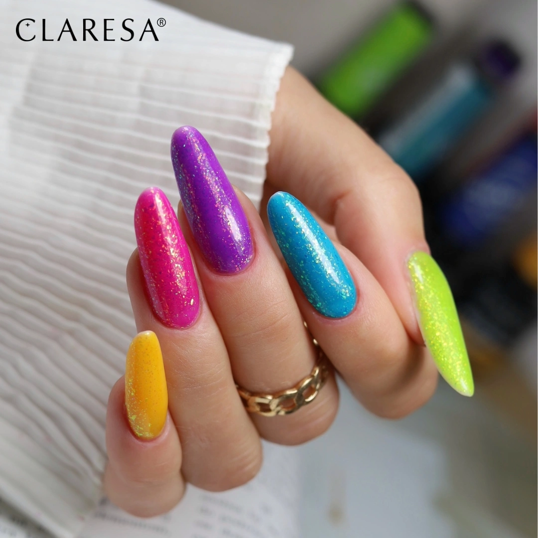 6 półtransparetnych baz hybrydowych w letnich odcieniach żółci, różu, niebieskiego, fioletu i zieleni pozwoli Ci stworzyć idealny manicure przy użyciu jednego produktu! Intensywne kolory z dodatkiem kawałeczków połyskującej folii będą świetnie pasować do wakacyjnego manicure przy lekko opalonej skórze, ale też do szalonych festiwalowych stylizacji. Dzięki średnio rzadkiej konsystencji baza aplikuje się łatwo i szybko, dzięki czemu możesz pomalować 4 paznokcie za jednym razem (poza kciukami). Formuła produktu doskonale się poziomuje – nie musisz wyrównywać smug po pędzelku. Baza pozostawia wizualnie cienkie i naturalnie wyglądające paznokcie z idealnie wyrównaną powierzchnią, a przy tym utwardza płytkę. Kolekcja Rainbow Jello Base zawiera tzw. promotor adhezji, czyli składnik, który zapewnia wysoką przyczepność, trwałość do 3 tygodni oraz odporność na odpryskiwanie i zapowietrzanie.