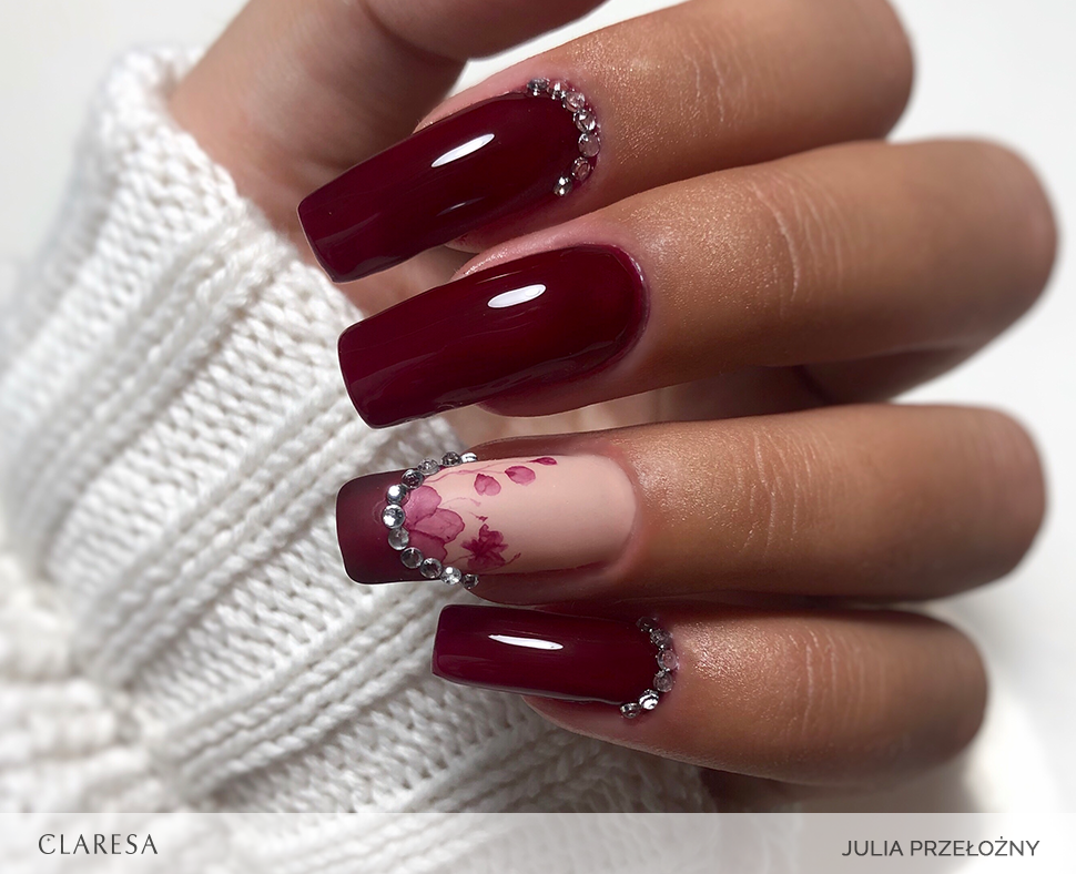 - Na wcześniej utwardzoną bazę hybrydową Claresa nałóż cienką warstwę kolorowego lakieru hybrydowego i utwardź go w lampie UV/LED.