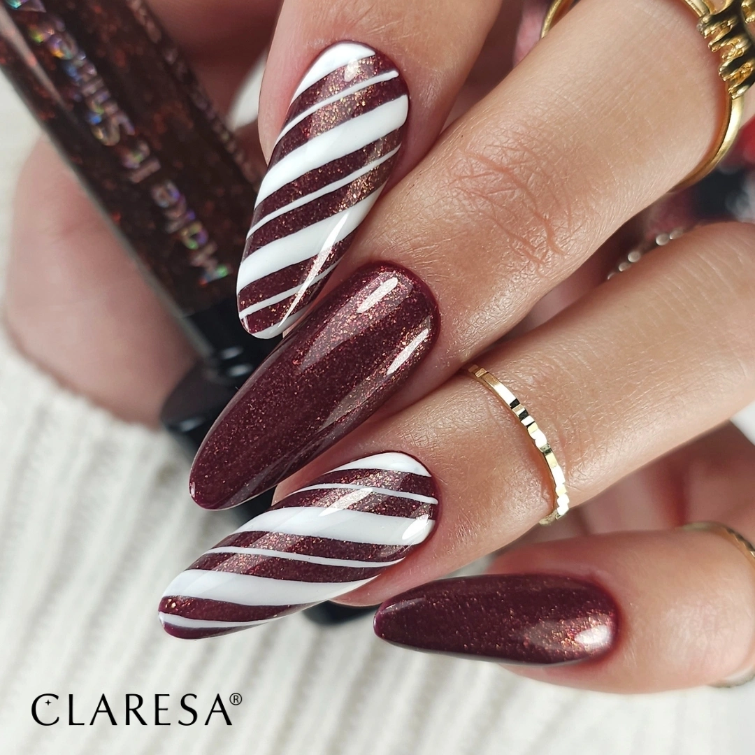 Świąteczne stylizacje paznokci mają zazwyczaj jeden mianownik - iskrzące drobiny. Chcąc wyczarować błyszczące zdobienia, możesz sięgnąć po brokatowe pyłki, żele lub naklejki. Dla tych, którzy cenią sobie prostotę wykonania lub jednolity wzór, stworzona została kolekcja 7 kolorów lakierów hybrydowych Claresa Make It Shine! Granaty, brązy, pomarańcze, zielenie, czerwienie oraz srebro to kolory, które jednoznacznie kojarzą się z okresem zimowo-świątecznym, dlatego stawiając na klasykę, Claresa stworzyła kolekcję opartą o skojarzenia związane z tym magicznym okresem. Kolekcja Make It Shine! to 7 lakierów hybrydowych z mieniącymi się drobinkami, które doskonale sprawdzą się zarówno przy wigilijnym stole, jak i na noworocznej imprezie.
