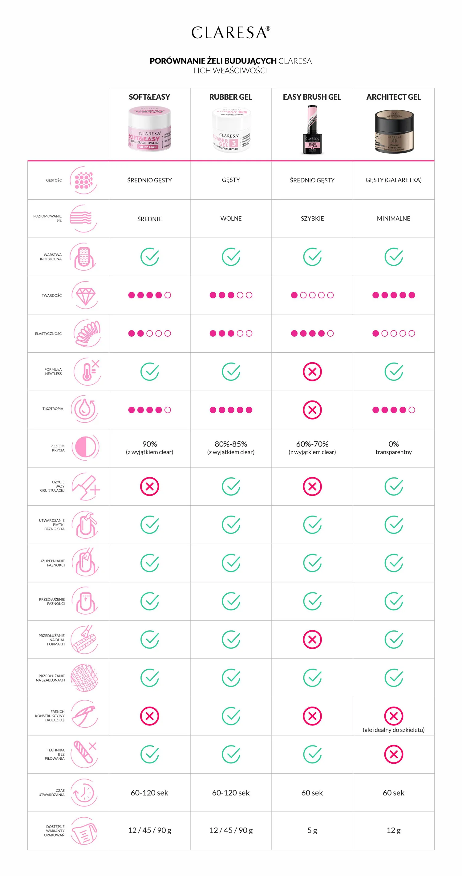 *Pamiętaj, że każda płytka jest inna i wymaga indywidualnego podejścia, dlatego w przypadku szczególnie wymagających paznokci dla wzmocnienia przyczepności żelu możesz użyć wcierki z ulubionej Bazy Claresa.