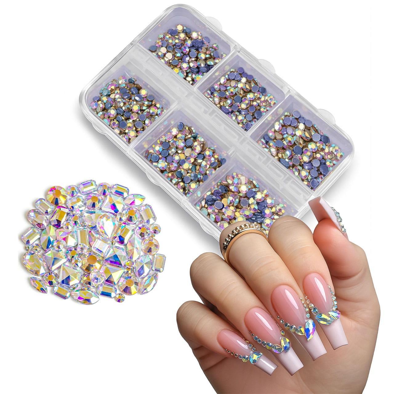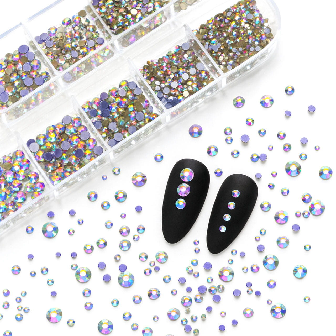 - Uniwersalny zestaw różnorodnych kształtów idealne do stylizacji salonowych i konkursowych odporne na odbarwienia i działanie topu świetnie trzymają się na bazie, żelu budującym lub kleju do ozdób Cyrkonie Nail Diamond to must-have w kuferku każdej stylistki, która ceni precyzję, trwałość i luksusowy efekt.