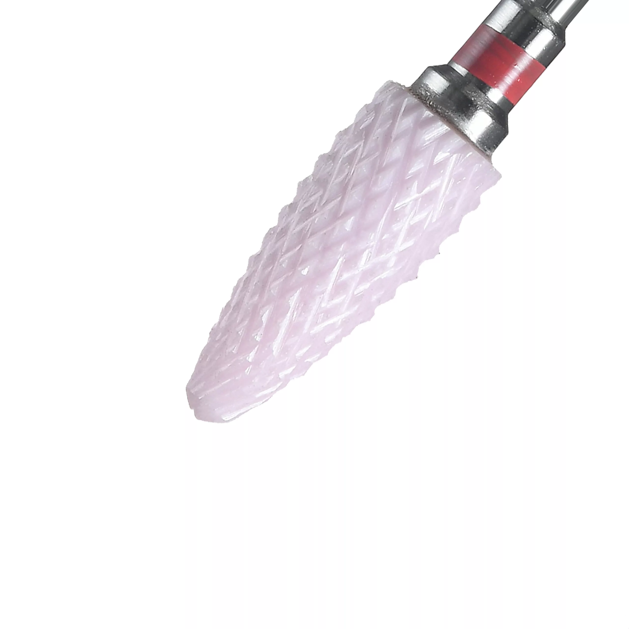 - Frez posiada skręconą strukturę ząbków i rowków dzięki czemu jest bardzo skuteczny i przy wolnych obrotach idealny do obróbki skórek wokół paznokci,