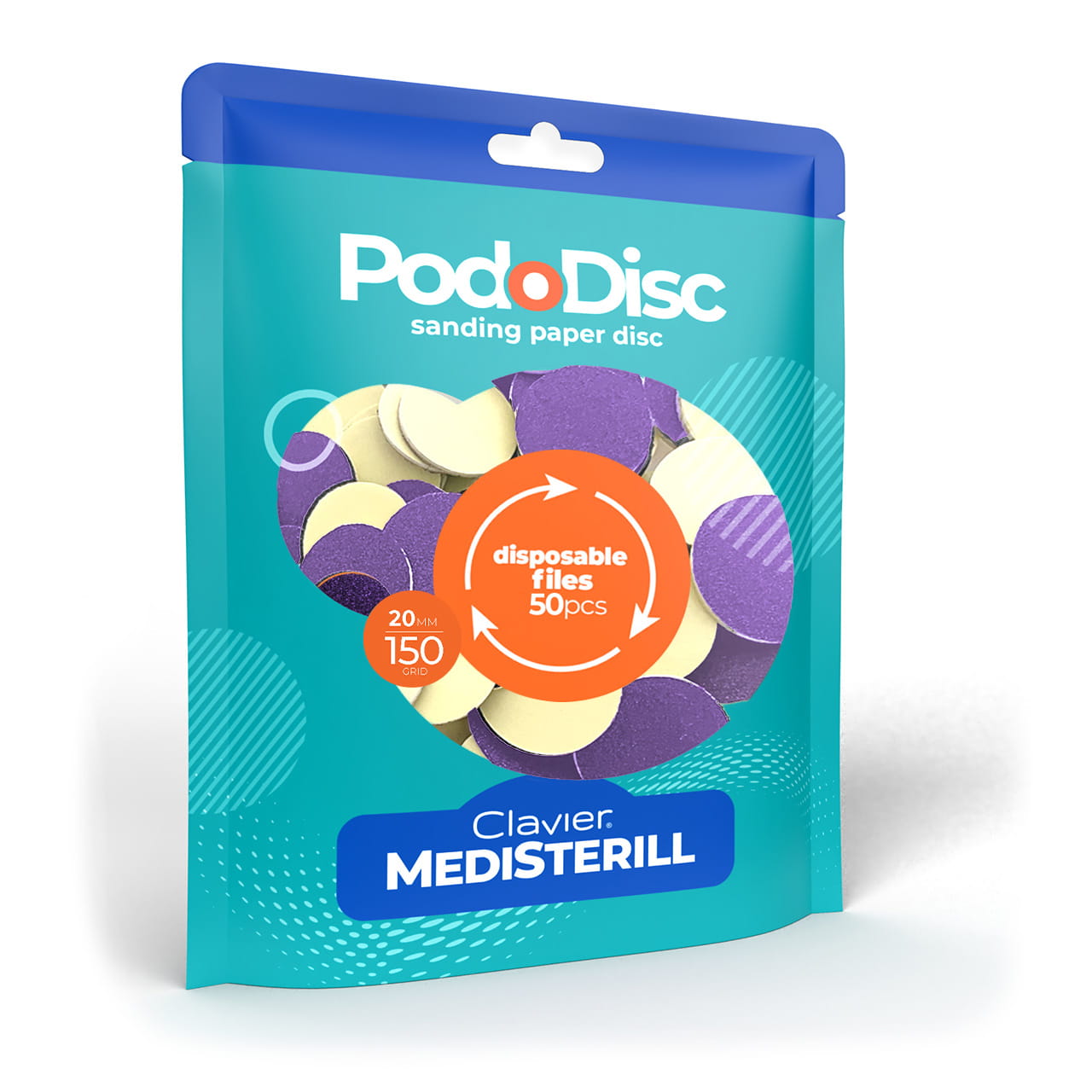 Jednorazowe nakładki ścierne na Pododisc gwarantują bezpieczny i higieniczny pedicure dla każdego klienta. Pododisc jest nieocenionym pomocnikiem w codziennej pracy pedicurzystów i podologów Świetnie sprawdza się do obrabiania całej stopy, miejscowych modzeli, szorstkiej skóry na palcach, czy w przypadku polerowania płytki paznokcia. Narzędzie gwarantuje bezpieczny i higieniczny pedicure dla każdego klienta, gdyż od razu po zabiegu naklejka ścierna zostaje wyrzucona, a stalowa baza jest dokładnie zdezynfekowana i wysterylizowana. Pododisc jest nieocenionym pomocnikiem w codziennej pracy pedicurzystów i podologów.