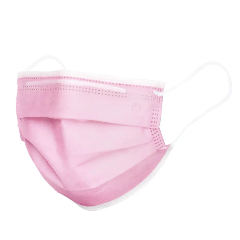 Trzywarstwowa, różowa maseczka chirurgiczna, wykonana z włókniny meltblown, mocowana na elastycznych gumkach, chroniąca drogi oddechowe przed bakteriami i drobnoustrojami. To jest wyrób medyczny. Używaj go zgodnie z instrukcją używania lub etykietą.