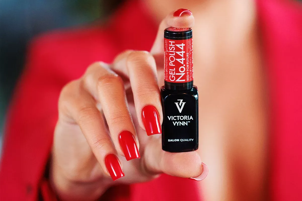 - GEL POLISH 444 Red-y for Future: Soczysta, żywa czerwień projektująca przyszłość.