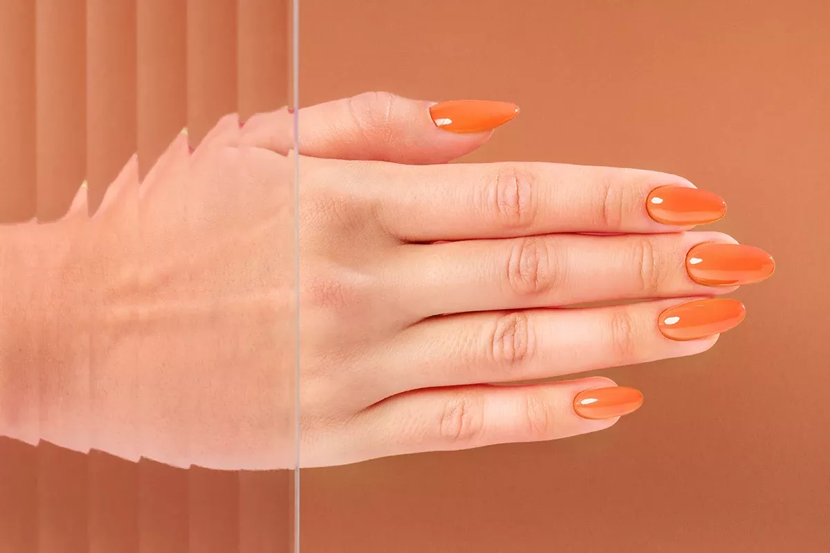 Ten pomarańczowy lakier hybrydowy to idealny wybór na jesienne paznokcie z wyrazistym charakterem. Idealny lakier hybrydowy na Halloween i nie tylko.