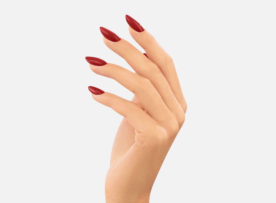 Red Battlement, klasyczna, głęboka czerwień. Kremowy lakier hybrydowy o doskonałym kryciu i trwałości.