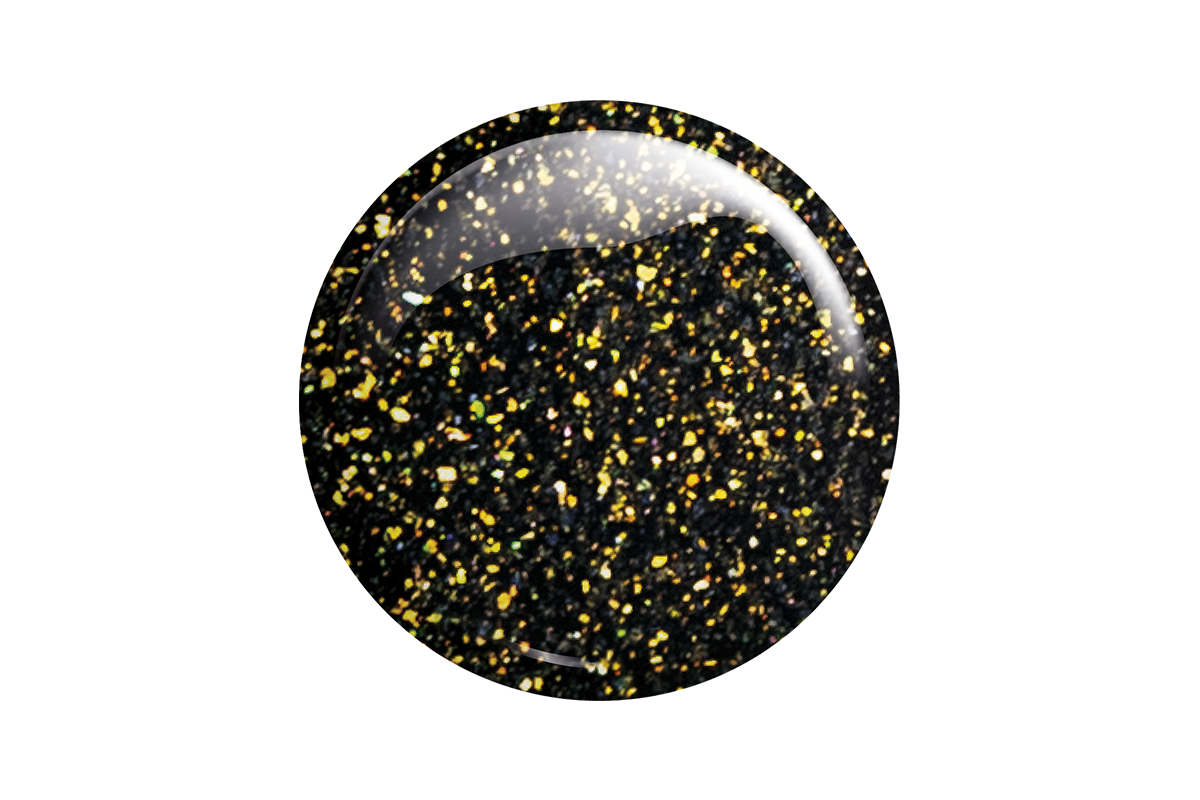 Top hybrydowy z mieniącymi się złotymi drobinkami, bez warstwy dyspersyjnej.